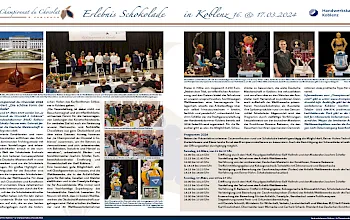 Nach den großen Erfolgen in den vergangenen Jahren lädt die Handwerkskammer Koblenz in Kooperation mit der Stadt Koblenz erneut zum Championnat du Chocolat à Coblence ein. Zum zweiten Mal wird in beiden Wettbewerben die deutsche Meisterschaft ausgetragen. Am 21. und 22. März 2026 treffen sich wieder Top-Chocolatiers. Spitzenprodukte wie Tafelschokolade, Pralinen, Trüffel, Wein und Spirituosen werden präsentiert, die Schokoladenwettbewerbe im Bereich „Freestyle“ und „Artistik“ über das Thema "Flora und Fauna trifft Schokolade" mit Teilnehmern aus ganz Deutschland werden wieder zum Anziehungspunkt für tausende Besucher und lassen die Herzen der Fans höher schlagen.